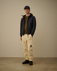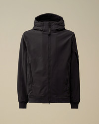 Hooded jacket crafted in C.P. Shell-R, a recycled multifilament 3-layer softshell stretch. Made from recycled Polyester yarn, certified by the Global Recycled Standard (GRS). The jacket features an adjustable hood, a two-way full zip fastening, side zip pockets, and C.P. Company’s iconic Lens. Ribbed cuffs and back hem complete the design. Bonded for a water column of 5000mm, offering windproof protection with anti-drop treatment. Regular fit. - Adjustable hood - Two-way full zip fastening - Lens detail - Side zip pockets - Ribbed cuffs and back hem - Regular fit CARE & COMPOSITION Care - Wash max 30°C - Mild process - Do not bleach - Do not tumble dry - Ironing maximum temperature 110°C - without steam - Do not dry clean - Line dry - Wash inside out - Do not soak - Remove detachable accessories before washing Composition - Lining: 100% Polyester - Secondary lining: 100% Cotton - Inner main fabric: 100% Polyester - External main fabric: 94% Polyester, 6% Elastane / Spandex SIZE & FITTING - Fits true to size, take your normal size - Model is 186 cm-6' 1" / 98-103 cm chest and is wearing a size L PRODUCT PASSPORT PRODUCT - Weaving: China - Dyeing: China - Confection: Myanmar - Product contains at least 75% of recycled material - Releases plastic microfibers into the environment during washing PACKAGING - Minimum percentage of recycled materials 70%
