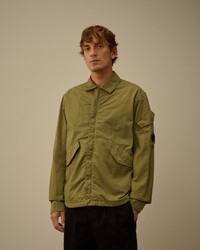 Overshirt crafted in diagonally woven nylon with a light resin finish on the reverse, providing softness and an opaque appearance. The overshirt features C.P. Company's iconic Lens, hidden two-way full zip fastening, and front snap pockets. Garment dyed with anti-drop treatment. Regular fit. - Classic collar - Hidden two-way full zip fastening with flap snap closure - Front flap snap pockets - Lens detail - Adjustable button cuffs - Garment dyed - Regular fit CARE & COMPOSITION Care - Wash max 30°C - Mild process - Do not bleach - Do not tumble dry - Ironing maximum temperature 110°C - without steam - Do not dry clean - Line dry - Wash separately - Do not soak - Remove detachable accessories before washing Composition - External fabric: 100% Polyamide / Nylon - Lining: 100% Polyamide / Nylon SIZE & FITTING - Fits true to size, take your normal size - Model is 186 cm-6' 1" / 98-103 cm chest and is wearing a size L PRODUCT PASSPORT PRODUCT - Weaving: Korea - Dyeing: China - Confection: China - Releases plastic microfibers into the environment during washing PACKAGING - Minimum percentage of recycled materials 70%