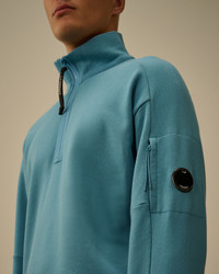 Half zip sweatshirt crafted in Diagonal Raised Fleece, a medium-weight brushed diagonal-weave cotton. The soft fabric ensures comfort and ease of movement. The sweatshirt features C.P. Company’s iconic Lens, ribbed cuffs and hem. Complete with a thumb hole on the cuffs. Regular fit. - Half zip fastening - Lens detail - Ribbed cuffs and hem - Thumb hole on cuffs - Regular fit CARE & COMPOSITION Care - Wash max 30°C - Do not bleach - Do not tumble dry - Ironing maximum temperature 110°C - without steam - Do not dry clean - Dry flat - Wash with similar colours - Wash inside out - Do not iron decorations - Do not expose to heat - Remove detachable accessories before washing - Dry inside out Composition - External fabric: 100% Cotton SIZE & FITTING - Fits true to size, take your normal size - Model is 186 cm-6' 1" / 98-103 cm chest and is wearing a size L PRODUCT PASSPORT PRODUCT - Weaving: China - Dyeing: China - Confection: China PACKAGING - Minimum percentage of recycled materials 70%