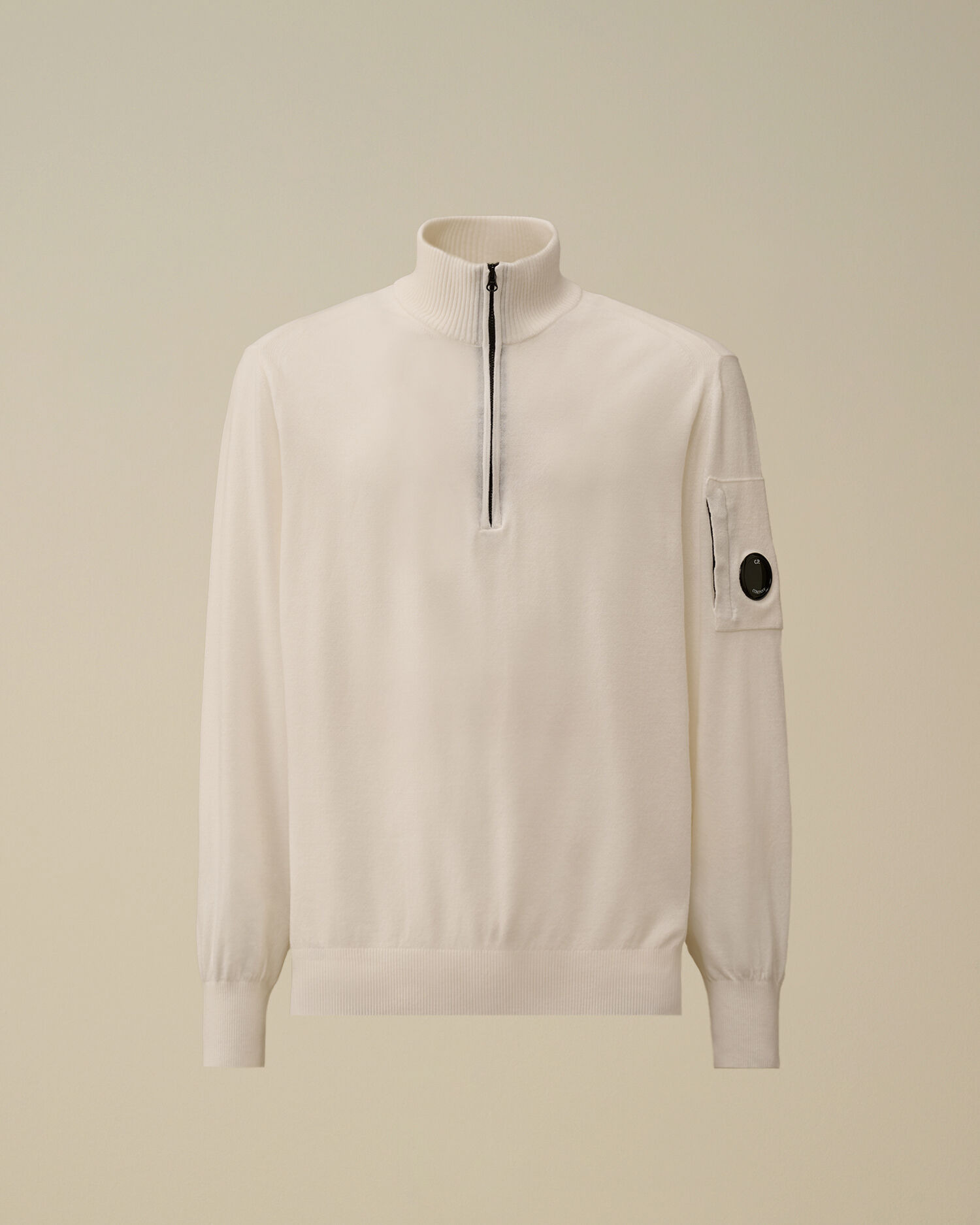 Half zip sweater crafted in Extrafine Merino Wool. The soft, lightweight yarn offers a refined texture and superior comfort. The knit features a ribbed neck, and C.P. Company’s iconic Lens. Finished with contrast stitching, ribbed cuffs and hem. Gauge 12. Regular fit. - Ribbed neck - Half zip fastening - Contrast stitching - Lens detail - Ribbed cuffs and hem - 12 Gauge knit - Regular fit CARE & COMPOSITION Care - Hand wash - Do not bleach - Do not tumble dry - Ironing maximum temperature 110°C - without steam - Do not dry clean - Dry flat - Remove detachable accessories before washing Composition - External fabric: 88% Virgin wool, 12% Polyester SIZE & FITTING - Fits true to size, take your normal size - Model is 186 cm-6' 1" / 98-103 cm chest and is wearing a size L PRODUCT PASSPORT PRODUCT - Weaving: Bulgaria - Dyeing: Bulgaria - Confection: Bulgaria PACKAGING - Minimum percentage of recycled materials 70%