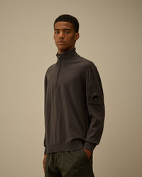 Half zip sweater crafted in Extrafine Merino Wool. The soft, lightweight yarn offers a refined texture and superior comfort. The knit features a ribbed neck, and C.P. Company’s iconic Lens. Finished with contrast stitching, ribbed cuffs and hem. Gauge 12. Regular fit. - Ribbed neck - Half zip fastening - Contrast stitching - Lens detail - Ribbed cuffs and hem - 12 Gauge knit - Regular fit CARE & COMPOSITION Care - Hand wash - Do not bleach - Do not tumble dry - Ironing maximum temperature 110°C - without steam - Do not dry clean - Dry flat - Remove detachable accessories before washing Composition - External fabric: 88% Virgin wool, 12% Polyester SIZE & FITTING - Fits true to size, take your normal size - Model is 186 cm-6' 1" / 98-103 cm chest and is wearing a size L PRODUCT PASSPORT PRODUCT - Weaving: Bulgaria - Dyeing: Bulgaria - Confection: Bulgaria PACKAGING - Minimum percentage of recycled materials 70%