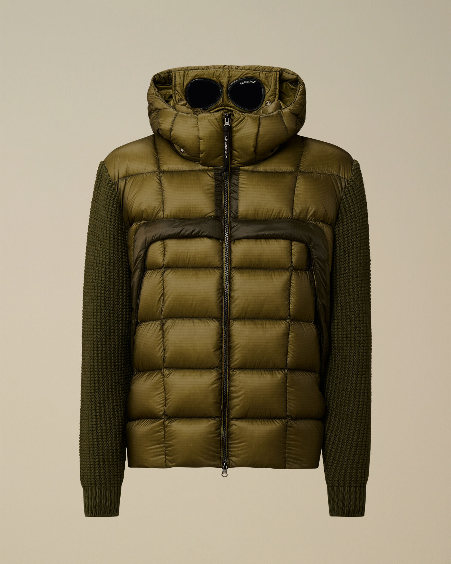Full zip sweater crafted in Extrafine Merino Wool mixed with D.D. Shell. The knit features C.P. Company’s iconic detachable and adjustable Goggle hood, and side hidden zip pockets. Finished with ribbed cuffs. Regular fit. - Detachable and adjustable Goggle hood - Two-way full zip fastening - Side hidden zip pockets - Ribbed cuffs - Regular fit CARE & COMPOSITION Care - Hand wash - Do not bleach - Do not tumble dry - Ironing maximum temperature 110°C - without steam - Do not dry clean - Dry flat - Wash separately - Remove detachable accessories before washing Composition - External fabric: 100% Wool - Lining: 100% Polyamide / Nylon - Padding (Fiber): 100% Polyester - Secondary fabric: 100% Polyamide / Nylon - Padding (Feather): [81gr. - 95% ] 95% White duck down, 5% Feather SIZE & FITTING - Fits true to size, take your normal size - Model is 186 cm-6' 1" / 98-103 cm chest and is wearing a size L PRODUCT PASSPORT PRODUCT - Weaving: China - Dyeing: China - Confection: China PACKAGING - Minimum percentage of recycled materials 70%
