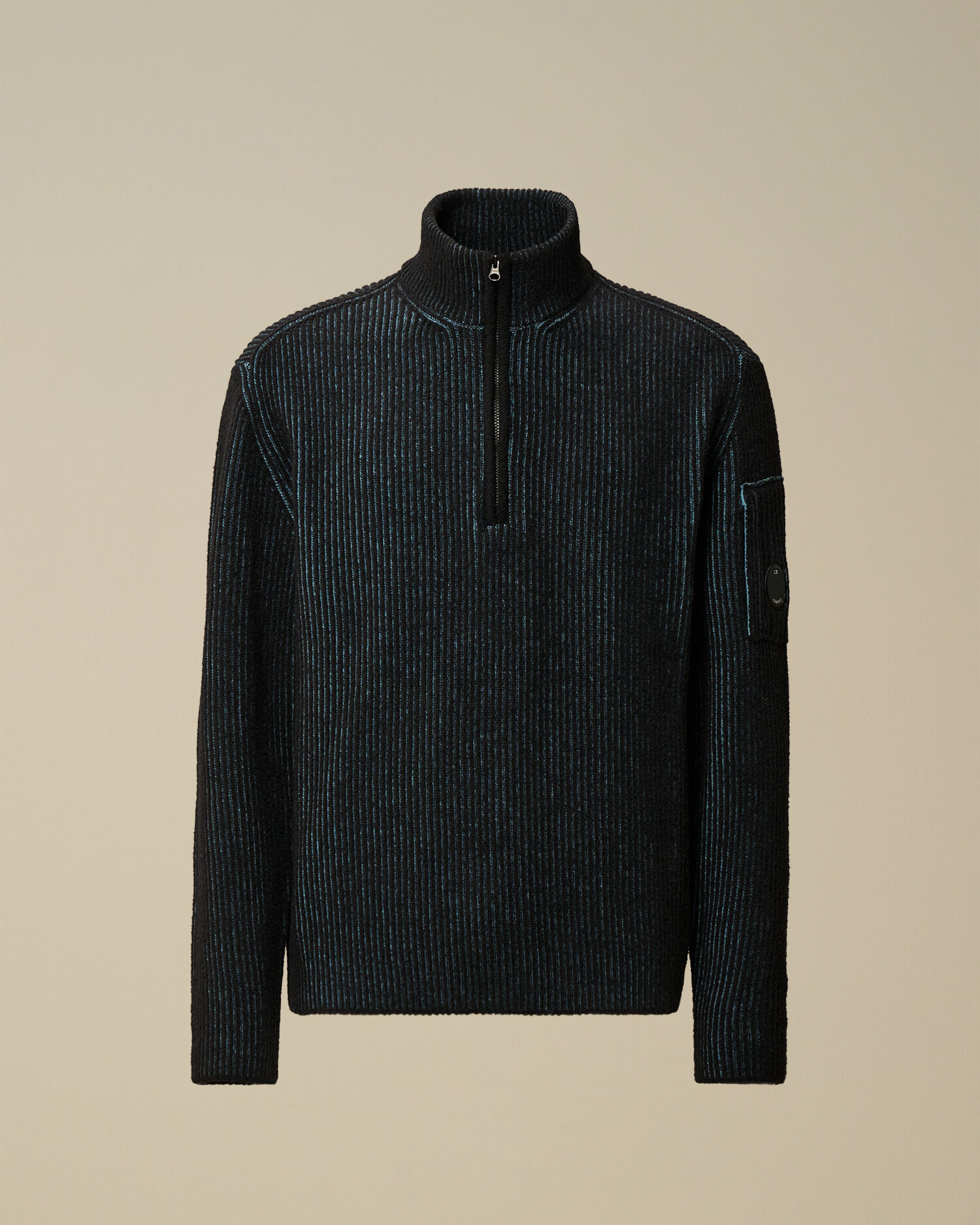 Half zip sweater crafted in vanise lambswool with contrast Polyester chenille. The knit features a ribbed collar and C.P. Company’s iconic Lens. 7 Gauge knit. Regular fit. - Ribbed collar - Half zip fastening - Lens detail - 7 Gauge knit - Regular fit CARE & COMPOSITION Care - Hand wash - Do not bleach - Do not tumble dry - Ironing maximum temperature 110°C - without steam - Do not dry clean - Flat drip dry in the shade - Wash inside out - Remove detachable accessories before washing Composition - External fabric: 70% Polyamide / Nylon, 29% Wool, 1% Other fibres SIZE & FITTING - Fits true to size, take your normal size - Model is 186 cm-6' 1" / 98-103 cm chest and is wearing a size L PRODUCT PASSPORT PRODUCT - Weaving: Italy - Dyeing: Italy - Confection: Croatia - Releases plastic microfibers into the environment during washing PACKAGING - Minimum percentage of recycled materials 70%