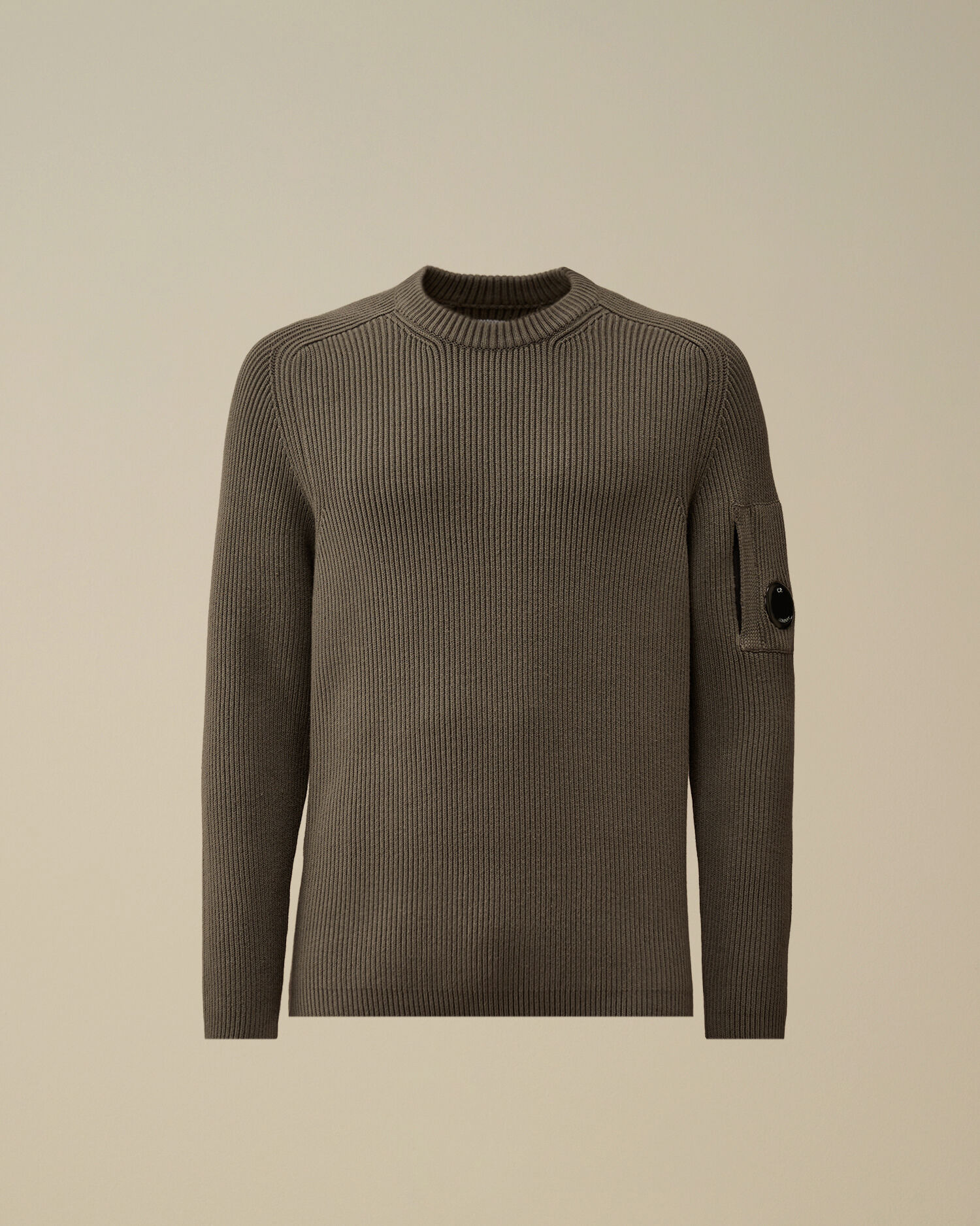 Crewneck sweater crafted in a stretch cotton/nylon blend with an English rib knit construction. The textured fabric offers flexibility and comfort. The knit features C.P. Company’s iconic Lens. Gauge 7. Regular fit. - Ribbed crewneck - Lens detail - 7 Gauge knit - Regular fit CARE & COMPOSITION Care - Wash max 30°C - Very mild process - Do not bleach - Do not tumble dry - Ironing maximum temperature 110°C - without steam - Do not dry clean - Flat dry in the shade - Wash separately - Wash inside out - Remove detachable accessories before washing Composition - External fabric: 71% Cotton, 29% Polyamide / Nylon SIZE & FITTING - Fits true to size, take your normal size - Model is 186 cm-6' 1" / 98-103 cm chest and is wearing a size L PRODUCT PASSPORT PRODUCT - Weaving: India - Dyeing: India - Confection: India PACKAGING - Minimum percentage of recycled materials 70%