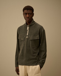 Half zip sweatshirt crafted from heavy plated cotton jersey, where the fabric undergoes a full-face print to achieve a refined two-tone effect. It is then enzyme-washed to soften the hand and give the garment a naturally worn look. The model features a stand-up collar and chest flap pockets with an embroidered logo. Made in Italy. Regular fit. - Stand-up collar - Half zip fastening - Chest flap snap pockets and embroidered logo - Made in Italy - Regular fit CARE & COMPOSITION Care - Wash max 30°C - Do not bleach - Do not tumble dry - Ironing maximum temperature 110°C - without steam - Do not dry clean - Flat dry in the shade - Wash separately - Wash inside out - Iron inside out - Do not iron decorations - Dry inside out - Do not expose the garment to direct sunlight or artificial light Composition - External fabric: 100% Cotton SIZE & FITTING - Model is 186 cm-6' 1" and is wearing a size L - Fit: Regular PRODUCT PASSPORT PRODUCT - Weaving: Italy - Dyeing: Italy - Confection: Italy PACKAGING - Minimum percentage of recycled materials 70%