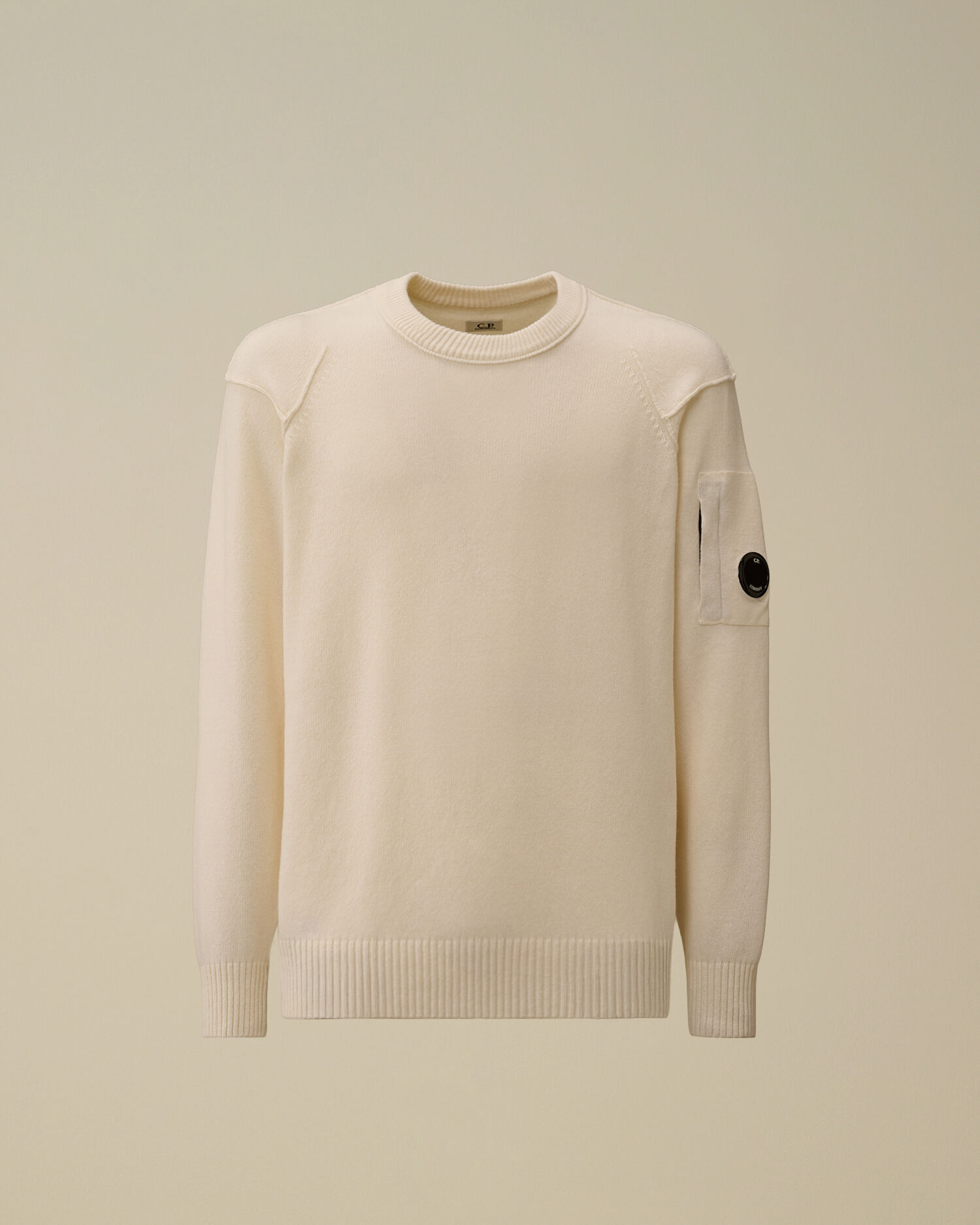 Crewneck sweater crafted in Lambswool GRS. The Global Recycled Standard certifies the use of products in conformity with environmental and social criteria extended to all stages of the production chain. The knit features C.P. Company’s iconic Lens, contrast stitching and ribbed cuffs and hem. Gauge 7. Regular fit. - Ribbed crewneck - Lens detail - Contrast stitching - Ribbed cuffs and hem - 7 Gauge knit - Regular fit CARE & COMPOSITION Care - Hand wash - Do not bleach - Do not tumble dry - Ironing maximum temperature 110°C - without steam - Dry cleaning in tetrachloroethene - mild process - Flat drip dry in the shade - Remove detachable accessories before washing - Dry inside out Composition - External fabric: 80% Wool, 20% Polyamide / Nylon SIZE & FITTING - Fits true to size, take your normal size - Model is 186 cm-6' 1" / 98-103 cm chest and is wearing a size L PRODUCT PASSPORT PRODUCT - Weaving: Italy - Dyeing: Italy - Confection: Moldova - Product contains at least 50% of recycled material PACKAGING - Minimum percentage of recycled materials 70%
