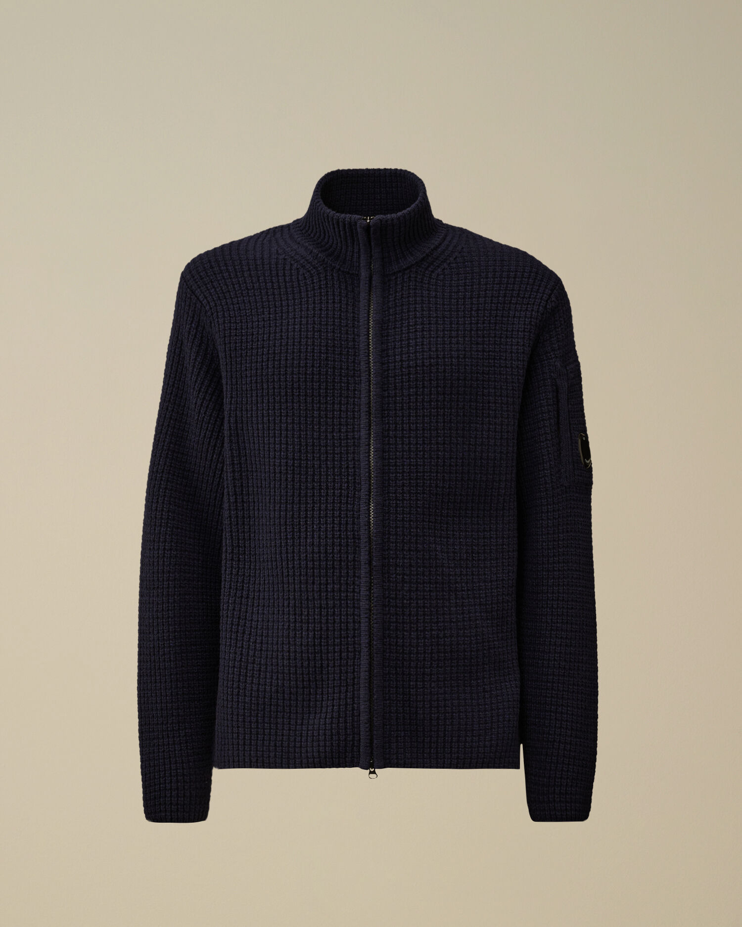 Full zip sweater crafted in Lambswool GRS*. The Global Recycled Standard certifies the use of products in conformity with environmental and social criteria extended to all stages of the production chain. The knit features a ribbed neck and C.P. Company’s iconic Lens. Gauge 5. Regular fit.*Lambswool items in the colour Gauze White are not produced using GRS-certified yarn. - Ribbed neck - Two-way full zip fastening - Lens detail - 5 Gauge knit - Regular fit CARE & COMPOSITION Care - Hand wash - Do not bleach - Do not tumble dry - Ironing maximum temperature 110°C - without steam - Dry cleaning in tetrachloroethene - mild process - Flat drip dry in the shade - Remove detachable accessories before washing - Dry inside out Composition - External fabric: 80% Wool, 20% Polyamide / Nylon SIZE & FITTING - Fits true to size, take your normal size - Model is 186 cm-6' 1" / 98-103 cm chest and is wearing a size L PRODUCT PASSPORT PRODUCT - Weaving: Italy - Dyeing: Italy - Confection: Moldova - Product contains at least 50% of recycled material PACKAGING - Minimum percentage of recycled materials 70%