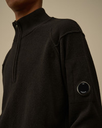 Half zip sweater crafted in Lambswool GRS. The Global Recycled Standard certifies the use of products in conformity with environmental and social criteria extended to all stages of the production chain. The knit features a ribbed neck, C.P. Company’s iconic Lens, contrast stitching, and ribbed cuffs and hem. Gauge 7. Regular fit. - Ribbed neck - Half zip fastening - Lens detail - Contrast stitching - Ribbed cuffs and hem - 7 Gauge knit - Regular fit CARE & COMPOSITION Care - Hand wash - Do not bleach - Do not tumble dry - Ironing maximum temperature 110°C - without steam - Dry cleaning in tetrachloroethene - mild process - Flat drip dry in the shade - Remove detachable accessories before washing - Dry inside out Composition - External fabric: 80% Wool, 20% Polyamide / Nylon SIZE & FITTING - Fits true to size, take your normal size - Model is 186 cm-6' 1" / 98-103 cm chest and is wearing a size L PRODUCT PASSPORT PRODUCT - Weaving: Italy - Dyeing: Italy - Confection: Moldova - Product contains at least 50% of recycled material PACKAGING - Minimum percentage of recycled materials 70%