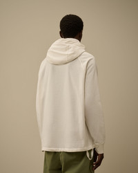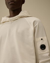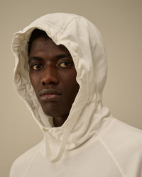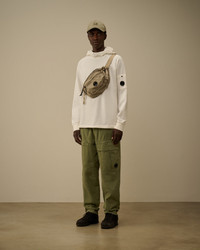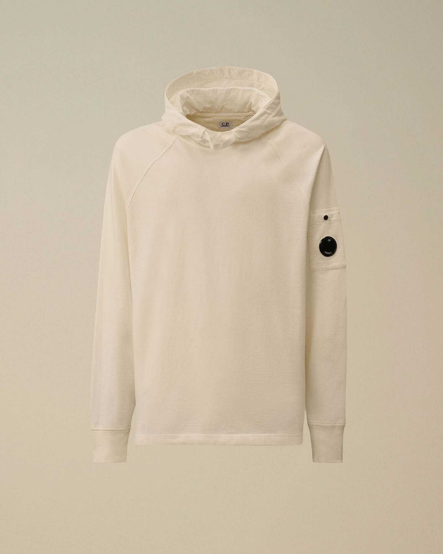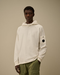 Hooded sweatshirt crafted in lightweight brushed fleece. The soft, breathable fabric ensures comfort and ease of movement. The sweatshirt features an adjustable hood with a front drawstring, C.P. Company’s iconic Lens, and ribbed cuffs. Finished with raglan sleeves and adjustable drawstring hem. Garment dyed. Regular fit. - Adjustable hood with front drawstring - Raglan sleeves - Lens detail - Ribbed cuffs - Adjustable drawstring hem - Garment dyed - Regular fit CARE & COMPOSITION Care - Wash max 30°C - Mild process - Do not bleach - Do not tumble dry - Ironing maximum temperature 110°C - without steam - Do not dry clean - Flat dry in the shade - Wash separately - Wash inside out - Iron inside out - Do not iron decorations - Remove detachable accessories before washing - Dry inside out - Do not expose the garment to direct sunlight or artificial light Composition - External fabric: 100% Cotton - Secondary fabric: 100% Cotton SIZE & FITTING - Fits true to size, take your normal size - Model is 186 cm-6' 1" / 98-103 cm chest and is wearing a size L PRODUCT PASSPORT PRODUCT - Weaving: Italy - Dyeing: Italy - Confection: Italy PACKAGING - Minimum percentage of recycled materials 70%