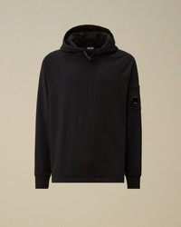Hooded sweatshirt crafted in lightweight brushed fleece. The soft, breathable fabric ensures comfort and ease of movement. The sweatshirt features an adjustable hood with a front drawstring, C.P. Company’s iconic Lens, and ribbed cuffs. Finished with raglan sleeves and adjustable drawstring hem. Garment dyed. Regular fit. - Adjustable hood with front drawstring - Raglan sleeves - Lens detail - Ribbed cuffs - Adjustable drawstring hem - Garment dyed - Regular fit CARE & COMPOSITION Care - Wash max 30°C - Mild process - Do not bleach - Do not tumble dry - Ironing maximum temperature 110°C - without steam - Do not dry clean - Flat dry in the shade - Wash separately - Wash inside out - Iron inside out - Do not iron decorations - Remove detachable accessories before washing - Dry inside out - Do not expose the garment to direct sunlight or artificial light Composition - External fabric: 100% Cotton - Secondary fabric: 100% Cotton SIZE & FITTING - Fits true to size, take your normal size - Model is 186 cm-6' 1" / 98-103 cm chest and is wearing a size L PRODUCT PASSPORT PRODUCT - Weaving: Italy - Dyeing: Italy - Confection: Italy PACKAGING - Minimum percentage of recycled materials 70%
