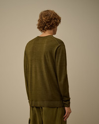 Crewneck sweater crafted in merino wool. The Fast Dyed process prevents the colour from penetrating uniformly into the fibre, creating a melange effect. The knit features C.P. Company’s iconic Lens, ribbed cuffs and hem. Finished with contrast stitching at the armholes and grid-knit panels on the shoulders. Gauge 12. Regular fit. - Ribbed crewneck - Lens detail - Armholes contrast stitching - Shoulders grid-knit panels - Ribbed cuffs and hem - Fast dyed - 12 Gauge knit - Regular fit CARE & COMPOSITION Care - Hand wash - Do not bleach - Do not tumble dry - Ironing maximum temperature 110°C - without steam - Dry cleaning in tetrachloroethene - mild process - Flat drip dry in the shade - Fabric may release color - wash separately and inside out - Remove detachable accessories before washing - Dry inside out Composition - External fabric: 100% Wool SIZE & FITTING - Fits true to size, take your normal size - Model is 186 cm-6' 1" / 98-103 cm chest and is wearing a size L PRODUCT PASSPORT PRODUCT - Weaving: Italy - Dyeing: Romania - Confection: Moldova PACKAGING - Minimum percentage of recycled materials 70%