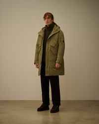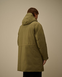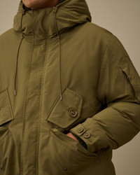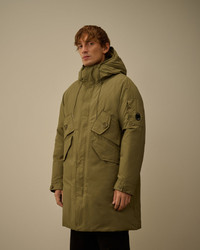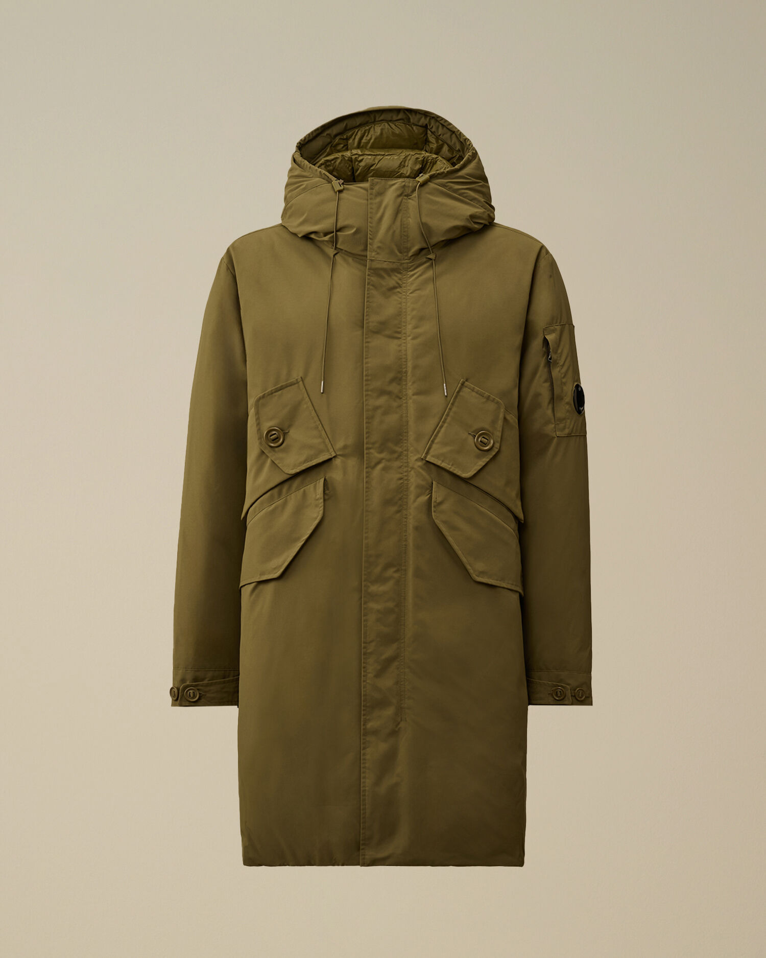 Long down jacket crafted in Micro-M (R), a multifilament barrier layer evolution of the 50 Fili. The cotton thread is replaced with a hydrophobic Polyester microfiber, while the nylon one is substituted with a recycled Polyester yarn. The jacket features an adjustable hood, hidden two-way full zip fastening with flap snap closure, and C.P. Company’s iconic Lens detail. Complete with chest patch button pockets, front flap snap pockets, inner zip pocket, and adjustable button cuffs. Water-resistant and breathable. Regular fit. - Adjustable hood - Hidden two-way full zip fastening with flap snap closure - Lens detail - Chest patch button pockets - Front flap snap pockets - Inner zip pocket - Adjustable button cuffs - Regular fit CARE & COMPOSITION Care - Wash max 30°C - Mild process - Do not bleach - Do not tumble dry - Ironing maximum temperature 110°C - without steam - Do not dry clean - Line dry - Wash separately - Remove detachable accessories before washing Composition - External fabric: 100% Polyester - Lining: 100% Polyamide / Nylon - Secondary lining: 100% Cotton - Padding (Feather): [234gr. - 90% ] 90% White duck down, 10% Feather SIZE & FITTING - Fits true to size, take your normal size - Model is 186 cm-6' 1" / 98-103 cm chest and is wearing a size L PRODUCT PASSPORT PRODUCT - Weaving: Japan - Dyeing: Japan - Confection: China - Product contains at least 50% of recycled material - Releases plastic microfibers into the environment during washing PACKAGING - Minimum percentage of recycled materials 70%
