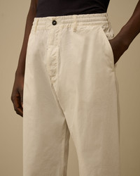 Pants crafted from Micro-Reps, a high-density woven cotton fabric distinguished by its compact structure and soft hand feel. The model features an adjustable drawstring waistband, button and zip fastening, and belt loops. Functional details include side pockets, a back right patch pocket with flap, button, and applied logo label, and a back left welt pocket with flap and button. Garment dyed to achieve unique colour depth and tonal variations that evolve with time and wear. Loose fit. - Adjustable drawstring waistband - Button and zip fastening - Belt loops - Side pockets - Back right patch flap button pocket with applied logo label - Back left welt flap button pocket - Garment dyed - Loose fit CARE & COMPOSITION Care - Wash max 30°C - Mild process - Do not bleach - Do not tumble dry - Ironing maximum temperature 110°C - without steam - Do not dry clean - Line dry - Wash separately - Wash inside out - Do not twist or wring - Iron inside out Composition - External fabric: 100% Cotton SIZE & FITTING - Model is 186 cm-6' 1" and is wearing a size 48 - Fit: Loose PRODUCT PASSPORT PRODUCT - Weaving: Turkiye - Dyeing: Tunisia - Confection: Tunisia PACKAGING - Minimum percentage of recycled materials 70%