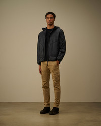 Packable hooded jacket crafted from Nada Shield, a 15-denier laminated rip-stop nylon, that ensures breathability and water resistance up to 5000 mm. The model features an adjustable visor hood with back drawstring, a two-way full zip fastening, and side snap pockets. The design is completed by the iconic C.P. Company Lens on the sleeve pocket, elasticated cuffs, and an adjustable drawstring hem for a comfortable and, functional fit. Padded with Primaloft® Evolve wadding, a solution that combines the thermal advantages of insulation with the versatility of fabric. Regular fit. - Packable - Adjustable visor hood with back drawstring - Two-way full zip fastening - Side snap pockets - Lens detail - Elasticated cuffs - Adjustable drawstring hem - Primaloft® Evolve padding - Regular fit CARE & COMPOSITION Care - Wash max 30°C - Mild process - Do not bleach - Do not tumble dry - Ironing maximum temperature 110°C - without steam - Do not dry clean - Line dry - Wash separately - Wash inside out - Do not iron decorations - Remove detachable accessories before washing Composition - External fabric: 100% Polyamide / Nylon - Lining: 100% Polyamide / Nylon - Padding (Fiber): 100% Polyester SIZE & FITTING - Model is 192 cm-6' 3.5" and is wearing a size L - Fit: Regular PRODUCT PASSPORT PRODUCT - Weaving: Korea - Dyeing: Korea - Confection: China - Product contains at least 20% of recycled material - Releases plastic microfibers into the environment during washing PACKAGING - Minimum percentage of recycled materials 70%
