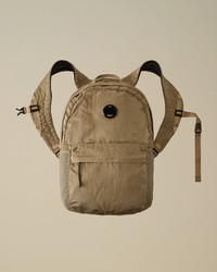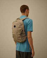 Backpack crafted in Nylon B, a military-inspired satin multi-filament nylon. The backpack features adjustable straps with buckles, padded shoulder straps, and a carry handle. The design includes a hidden zip pocket with C.P. Company’s iconic Lens, a bottom zip pocket, side mesh, and an inner snap pocket. Garment dyed and anti-drop treated. - Adjustable strap and buckle - Padded shoulder straps - Carry handle - Lens detail with hidden zip pocket - Bottom zip pocket - Side mesh - Inner snap pocket - Garment dyed CARE & COMPOSITION Care - Wash max 30°C - Mild process - Do not bleach - Do not tumble dry - Do not iron - Do not dry clean - Line dry - Wash separately - Remove detachable accessories before washing Composition - External fabric: 100% Polyamide / Nylon - Lining: 100% Polyester - Secondary fabric: 100% Polyester - Third fabric: 87% Polyester, 13% Elastane / Spandex PRODUCT PASSPORT PRODUCT - Weaving: Korea - Dyeing: China - Confection: China - Releases plastic microfibers into the environment during washing PACKAGING - Minimum percentage of recycled materials 70%