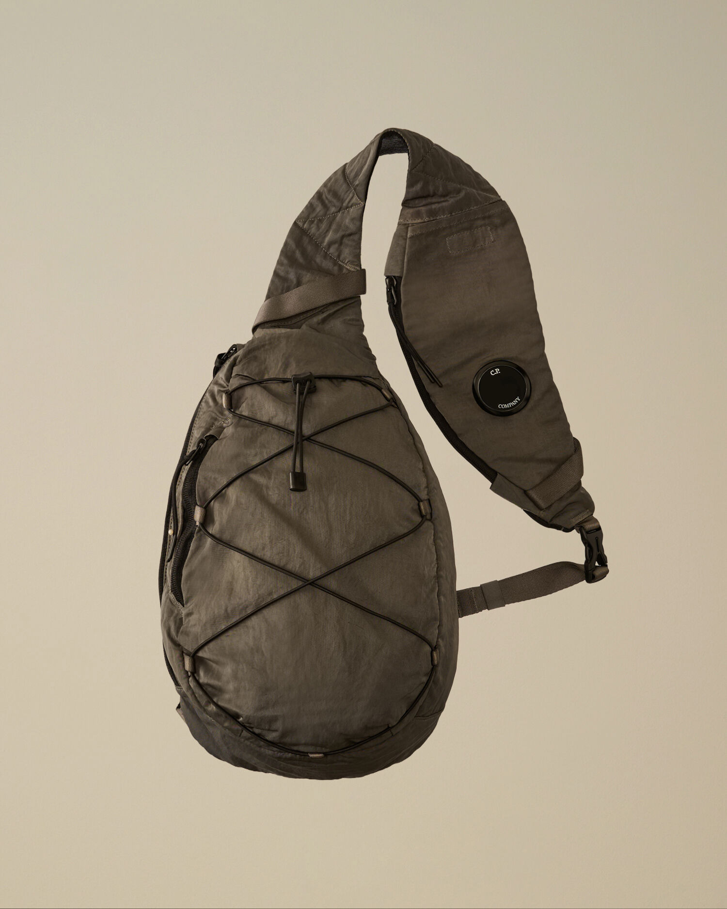 Crossbody rucksack crafted in Nylon B, a military-inspired satin multi-filament nylon. The rucksack features an adjustable strap with buckle closure, back zip and velcro pockets, and additional zip pockets. Inside, it includes a snap pocket with a logo detail. Finished with C.P. Company’s iconic Lens. Garment dyed and anti-drop treated. - Adjustable strap with buckle closure - Back zip and velcro pockets - Zip pockets - Lens detail - Inner snap pocket with logo detail - Garment dyed CARE & COMPOSITION Care - Wash max 30°C - Mild process - Do not bleach - Do not tumble dry - Do not iron - Do not dry clean - Line dry - Wash separately - Remove detachable accessories before washing Composition - External fabric: 100% Polyamide / Nylon - Lining: 100% Polyester - Secondary fabric: 100% Polyester - Secondary lining: 100% Polyester PRODUCT PASSPORT PRODUCT - Weaving: Korea - Dyeing: China - Confection: China - Releases plastic microfibers into the environment during washing PACKAGING - Minimum percentage of recycled materials 70%