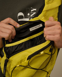 Crossbody rucksack crafted in Nylon B, a military-inspired satin multi-filament nylon. The rucksack features an adjustable strap with buckle closure, back zip and velcro pockets, and additional zip pockets. Inside, it includes a snap pocket with a logo detail. Finished with C.P. Company’s iconic Lens. Garment dyed and anti-drop treated. - Adjustable strap with buckle closure - Back zip and velcro pockets - Zip pockets - Lens detail - Inner snap pocket with logo detail - Garment dyed CARE & COMPOSITION Care - Wash max 30°C - Mild process - Do not bleach - Do not tumble dry - Do not iron - Do not dry clean - Line dry - Wash separately - Remove detachable accessories before washing Composition - External fabric: 100% Polyamide / Nylon - Lining: 100% Polyester - Secondary fabric: 100% Polyester - Secondary lining: 100% Polyester PRODUCT PASSPORT PRODUCT - Weaving: Korea - Dyeing: China - Confection: China - Releases plastic microfibers into the environment during washing PACKAGING - Minimum percentage of recycled materials 70%