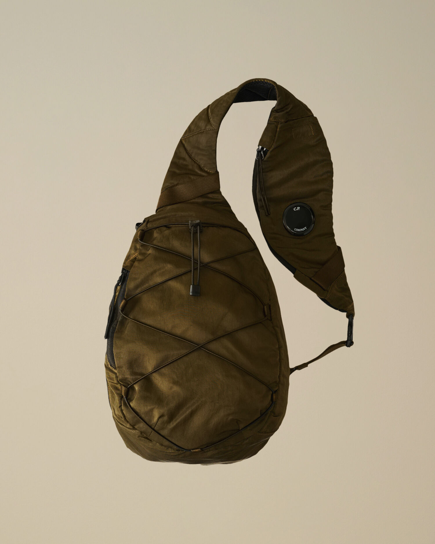 Crossbody rucksack crafted in Nylon B, a military-inspired satin multi-filament nylon. The rucksack features an adjustable strap with buckle closure, back zip and velcro pockets, and additional zip pockets. Inside, it includes a snap pocket with a logo detail. Finished with C.P. Company’s iconic Lens. Garment dyed and anti-drop treated. - Adjustable strap with buckle closure - Back zip and velcro pockets - Zip pockets - Lens detail - Inner snap pocket with logo detail - Garment dyed CARE & COMPOSITION Care - Wash max 30°C - Mild process - Do not bleach - Do not tumble dry - Do not iron - Do not dry clean - Line dry - Wash separately - Remove detachable accessories before washing Composition - External fabric: 100% Polyamide / Nylon - Lining: 100% Polyester - Secondary fabric: 100% Polyester - Secondary lining: 100% Polyester PRODUCT PASSPORT PRODUCT - Weaving: Korea - Dyeing: China - Confection: China - Releases plastic microfibers into the environment during washing PACKAGING - Minimum percentage of recycled materials 70%