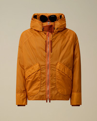 Goggle down jacket crafted in Opal, a lightweight multifilament nylon coated with a Panama texture transparent membrane. The jacket features C.P. Company’s iconic Goggle hood with back straps, face flap snap placket, and full zip fastening. Complete with side flap snap pockets, inner elasticated cuffs, and an adjustable drawstring hem. Garment dyed and anti-drop treated. Regular fit. - Adjustable Goggle hood with back straps - Face flap snap placket - Full zip fastening - Side flap snap pockets - Inner elasticated cuffs - Adjustable drawstring hem - Garment dyed - Regular fit CARE & COMPOSITION Care - Wash max 30°C - Mild process - Do not bleach - Do not tumble dry - Do not iron - Do not dry clean - Line dry - Wash separately - Reshape when damp - Remove detachable accessories before washing Composition - External fabric: 100% Polyamide / Nylon - Lining: 100% Polyamide / Nylon - Coating: 100% Polyurethanic resin - Padding (Feather): [202gr. - 90% ] 90% Grey duck down, 10% Grey Duck feather SIZE & FITTING - Fits true to size, take your normal size - Model is 186 cm-6' 1" / 98-103 cm chest and is wearing a size L PRODUCT PASSPORT PRODUCT - Weaving: Italy - Dyeing: Italy - Confection: Bulgaria - Product contains at least 20% of recycled material - Releases plastic microfibers into the environment during washing PACKAGING - Minimum percentage of recycled materials 70%