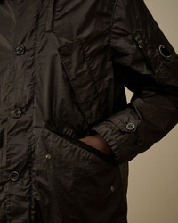 Hooded jacket crafted in Opal, a lightweight multifilament nylon coated with a Panama texture transparent membrane. The jacket features C.P. Company’s iconic Lens, a classic collar with a concealable zip hood, and hidden full zip fastening with a flap button closure. Complete with front patch button pockets, and adjustable flap button cuffs. Equipped with a detachable down lining for versatile insulation. Garment dyed and anti-drop treated. Regular fit. - Classic collar with concealable zip hood - Hidden full zip fastening with flap button closure - Lens detail - Front patch snap pockets - Adjustable flap button cuffs - Detachable down lining with snap fastening - Garment dyed - Regular fit CARE & COMPOSITION Care - Wash max 30°C - Mild process - Do not bleach - Do not tumble dry - Ironing maximum temperature 110°C - without steam - Do not dry clean - Line dry - Wash separately - Reshape when damp Composition - External fabric: 100% Polyamide / Nylon - Lining: 100% Polyamide / Nylon - Coating: 100% Polyurethanic resin - Secondary fabric: 100% Polyamide / Nylon - Secondary lining: 100% Polyamide / Nylon - Padding (Feather): [130gr. - 90% ] 90% Grey duck down, 10% Grey Duck feather SIZE & FITTING - Fits true to size, take your normal size - Model is 186 cm-6' 1" / 98-103 cm chest and is wearing a size L PRODUCT PASSPORT PRODUCT - Weaving: Italy - Dyeing: Italy - Confection: Bulgaria - Product contains at least 25% of recycled material - Releases plastic microfibers into the environment during washing PACKAGING - Minimum percentage of recycled materials 70%