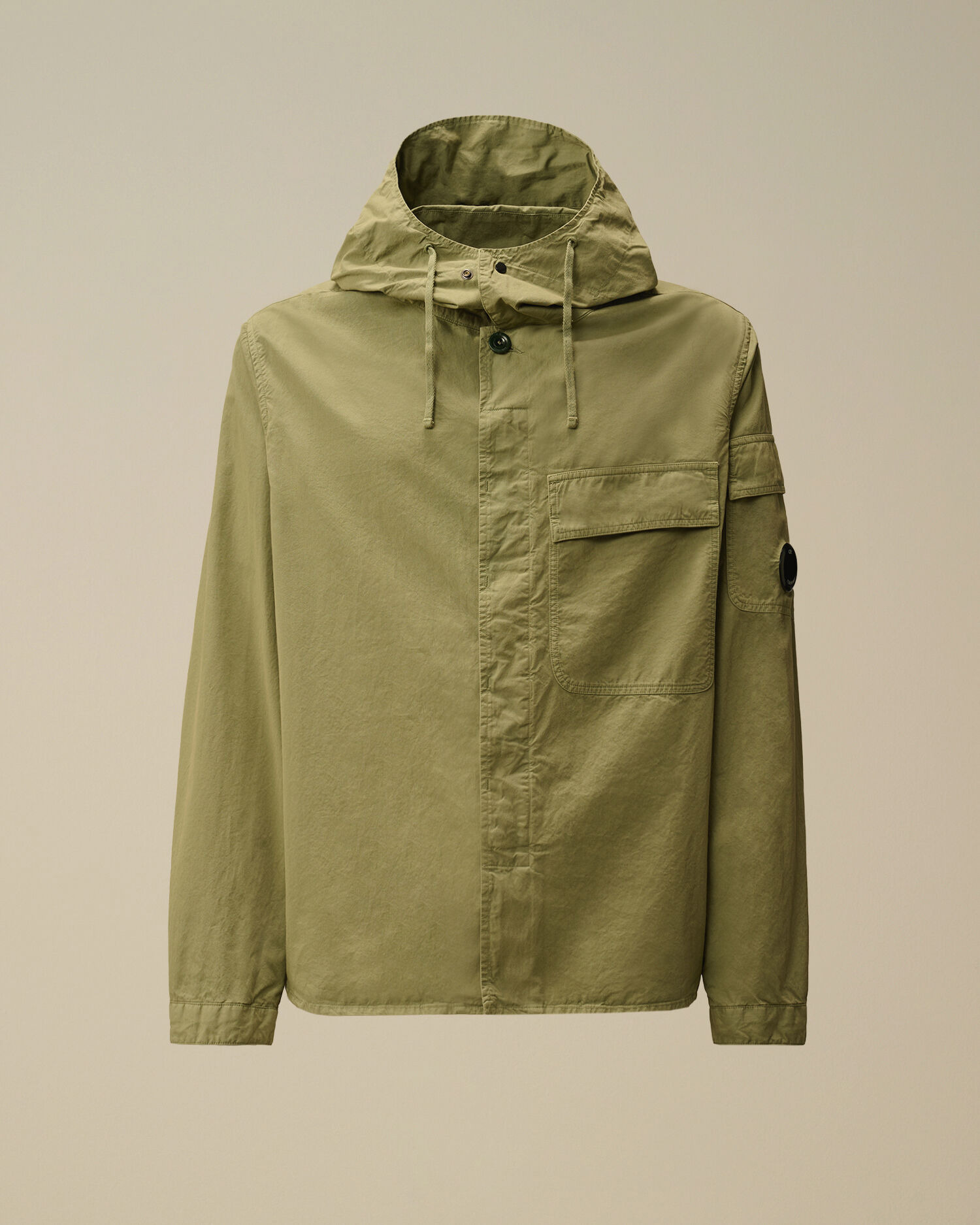 Hooded overshirt crafted in Gabardine made from 100% organic cotton. Certified according to the Global Organic Textile Standard (GOTS). The overshirt features C.P. Company’s iconic Lens, hidden two-way full zip fastening, and chest snap pocket. Garment dyed. Regular fit. - Adjustable hood with snap placket - Hidden two-way full zip fastening with button closure - Chest flap snap pocket - Lens detail - Adjustable button cuffs - Garment dyed - Regular fit CARE & COMPOSITION Care - Wash max 30°C - Do not bleach - Do not tumble dry - Ironing maximum temperature 110°C - without steam - Do not dry clean - Line dry in the shade - Wash separately - Do not soak - Remove detachable accessories before washing - Do not expose the garment to direct sunlight or artificial light Composition - External fabric: 100% Cotton SIZE & FITTING - Fits true to size, take your normal size - Model is 186 cm-6' 1" / 98-103 cm chest and is wearing a size L PRODUCT PASSPORT PRODUCT - Weaving: Turkiye - Dyeing: Tunisia - Confection: Tunisia PACKAGING - Minimum percentage of recycled materials 70%