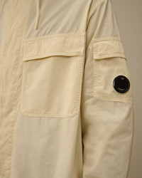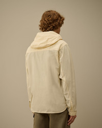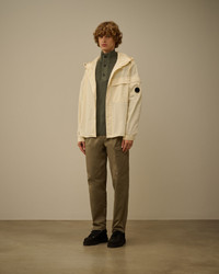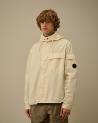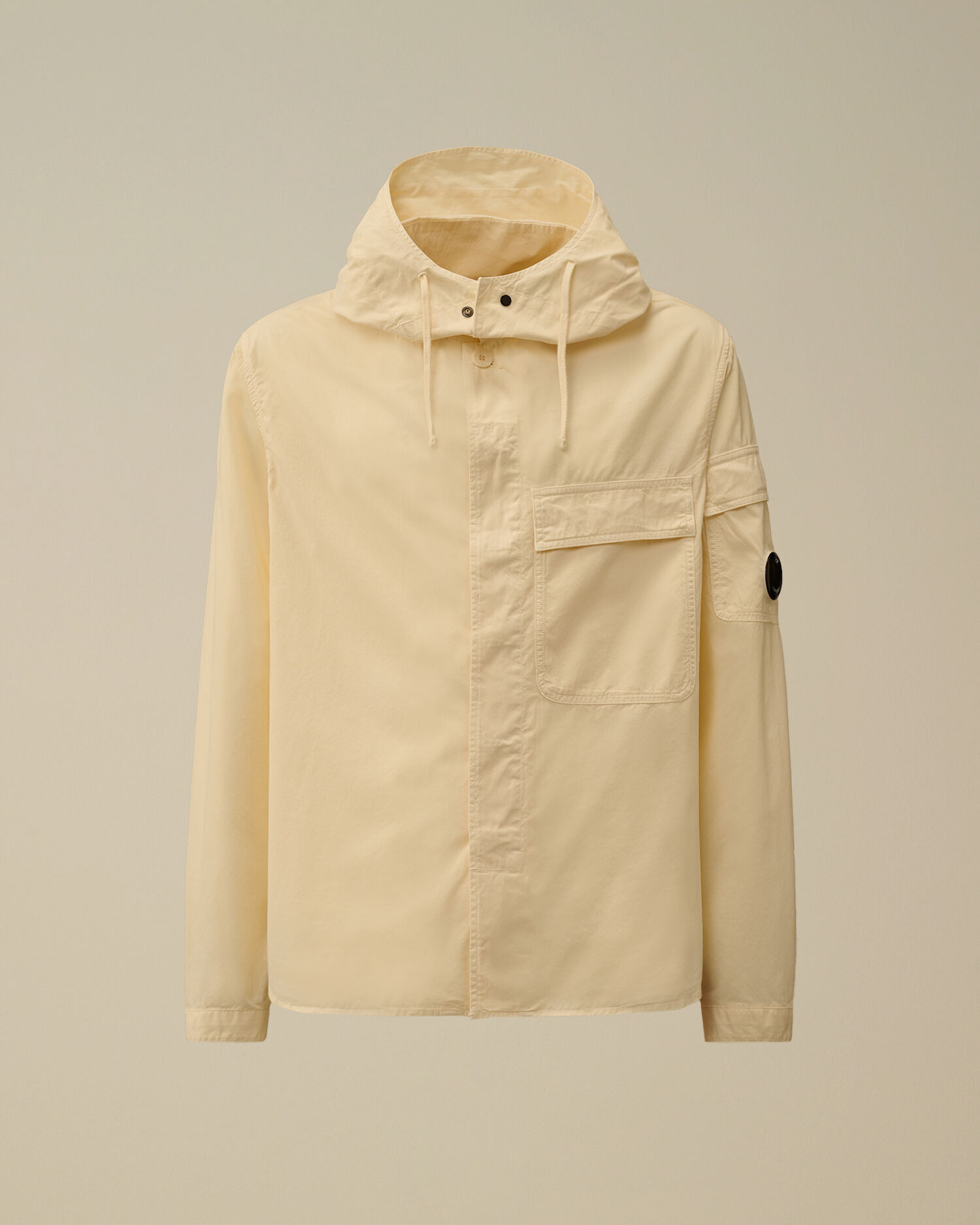 Hooded overshirt crafted in Gabardine made from 100% organic cotton. Certified according to the Global Organic Textile Standard (GOTS). The overshirt features C.P. Company’s iconic Lens, hidden two-way full zip fastening, and chest snap pocket. Garment dyed. Regular fit. - Adjustable hood with snap placket - Hidden two-way full zip fastening with button closure - Chest flap snap pocket - Lens detail - Adjustable button cuffs - Garment dyed - Regular fit CARE & COMPOSITION Care - Wash max 30°C - Do not bleach - Do not tumble dry - Ironing maximum temperature 110°C - without steam - Do not dry clean - Line dry in the shade - Wash separately - Do not soak - Remove detachable accessories before washing - Do not expose the garment to direct sunlight or artificial light Composition - External fabric: 100% Cotton SIZE & FITTING - Fits true to size, take your normal size - Model is 186 cm-6' 1" / 98-103 cm chest and is wearing a size L PRODUCT PASSPORT PRODUCT - Weaving: Turkiye - Dyeing: Tunisia - Confection: Tunisia PACKAGING - Minimum percentage of recycled materials 70%