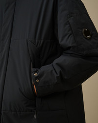 Hooded padded parka crafted in Pro-Tek, a Polyester mechanical stretch that combines the weight and comfort of a sweatshirt with the protection of an outer layer. The jacket features C.P. Company’s iconic Lens, a hidden two-way full zip fastening, a concealable visor hood, and side hidden zip pockets. Padded with Primaloft® Silver wadding, an insulation solution with high thermal and breathability properties. Anti-drop treated. Regular fit. - Concealable zip visor hood - Hidden two-way full zip fastening with flap snap closure - Side hidden zip pockets - Lens detail - Adjustable snap cuffs with internal elastic gaiter - Primaloft® Silver padding - Regular fit CARE & COMPOSITION Care - Wash max 30°C - Mild process - Do not bleach - Do not tumble dry - Ironing maximum temperature 110°C - without steam - Do not dry clean - Line dry - Wash inside out - Remove detachable accessories before washing Composition - External fabric: 100% Polyester - Lining: 100% Polyamide / Nylon - Padding (Fiber): 100% Polyester SIZE & FITTING - Fits true to size, take your normal size - Model is 186 cm-6' 1" / 98-103 cm chest and is wearing a size L PRODUCT PASSPORT PRODUCT - Weaving: China - Dyeing: China - Confection: Myanmar - Releases plastic microfibers into the environment during washing PACKAGING - Minimum percentage of recycled materials 70%
