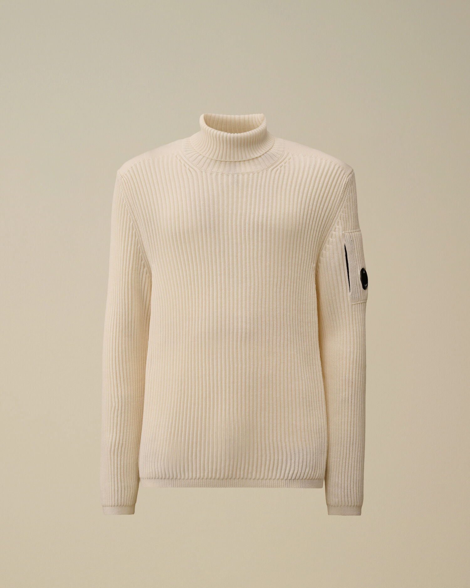 Turtleneck sweater crafted in Re-Wool, an Extrafine Merino Wool blend certified by the Responsible Wool Standard (RWS) and combined with recycled Polyester certified by the Global Recycled Standard (GRS). The knit features C.P. Company’s iconic Lens. Gauge 7. Regular fit. - Ribbed turtleneck - Lens detail - 7 Gauge knit - Regular fit CARE & COMPOSITION Care - Wash max 30°C - Very mild process - Do not bleach - Do not tumble dry - Ironing maximum temperature 110°C - without steam - Dry cleaning in tetrachloroethene - mild process - Flat drip dry - Remove detachable accessories before washing Composition - External fabric: 55% Virgin wool, 45% Polyester SIZE & FITTING - Fits true to size, take your normal size - Model is 186 cm-6' 1" / 98-103 cm chest and is wearing a size L PRODUCT PASSPORT PRODUCT - Weaving: Bulgaria - Dyeing: China - Confection: Bulgaria - Product contains at least 40% of recycled material PACKAGING - Minimum percentage of recycled materials 70%