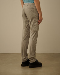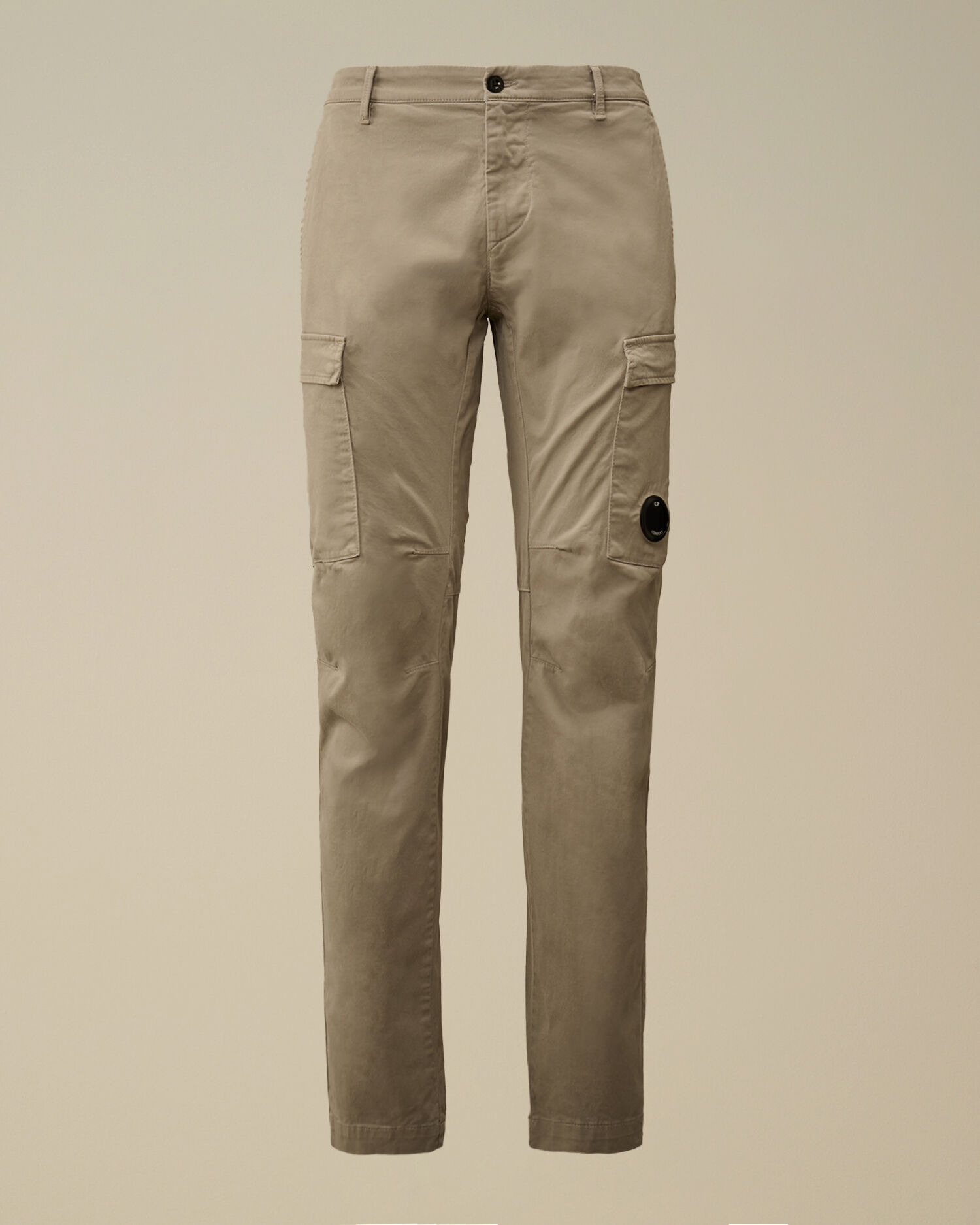 Cargo pants crafted in smooth, soft-textured stretch cotton. The pants feature C.P. Company’s iconic Lens, button and zip fastening, belt loops, side pockets, and a cargo flap snap pockets. Complete with back welt pockets with an applied label. Garment dyed. Ergonomic fit. - Button and zip fastening - Belt loops - Side pockets - Cargo flap snap pockets with Lens detail - Back welt pockets with applied label - Garment dyed - Ergonomic fit CARE & COMPOSITION Care - Wash max 30°C - Mild process - Do not bleach - Do not tumble dry - Ironing maximum temperature 110°C - without steam - Do not dry clean - Line dry - Wash separately - Wash inside out - Remove detachable accessories before washing Composition - External fabric: 98% Cotton, 2% Elastane / Spandex SIZE & FITTING - Fits true to size, take your normal size - Model is 186 cm-6' 1"/ 88-91 cm waist and is wearing a size 48 PRODUCT PASSPORT PRODUCT - Weaving: Turkiye - Dyeing: Romania - Confection: Romania PACKAGING - Minimum percentage of recycled materials 70%