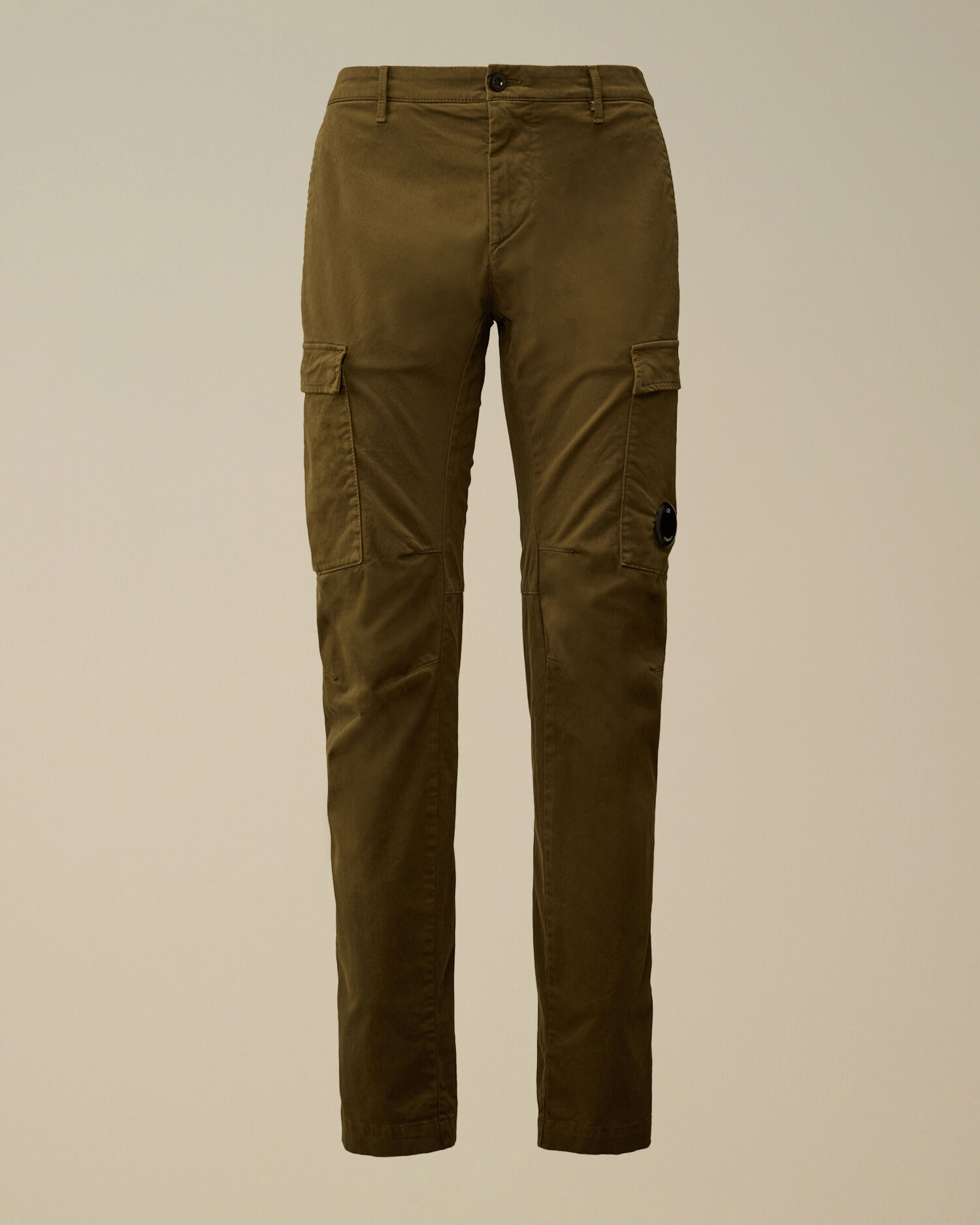 Cargo pants crafted in smooth, soft-textured stretch cotton. The pants feature C.P. Company’s iconic Lens, button and zip fastening, belt loops, side pockets, and a cargo flap snap pockets. Complete with back welt pockets with an applied label. Garment dyed. Ergonomic fit. - Button and zip fastening - Belt loops - Side pockets - Cargo flap snap pockets with Lens detail - Back welt pockets with applied label - Garment dyed - Ergonomic fit CARE & COMPOSITION Care - Wash max 30°C - Mild process - Do not bleach - Do not tumble dry - Ironing maximum temperature 110°C - without steam - Do not dry clean - Line dry - Wash separately - Wash inside out - Remove detachable accessories before washing Composition - External fabric: 98% Cotton, 2% Elastane / Spandex SIZE & FITTING - Fits true to size, take your normal size - Model is 186 cm-6' 1"/ 88-91 cm waist and is wearing a size 48 PRODUCT PASSPORT PRODUCT - Weaving: Turkiye - Dyeing: Romania - Confection: Romania PACKAGING - Minimum percentage of recycled materials 70%