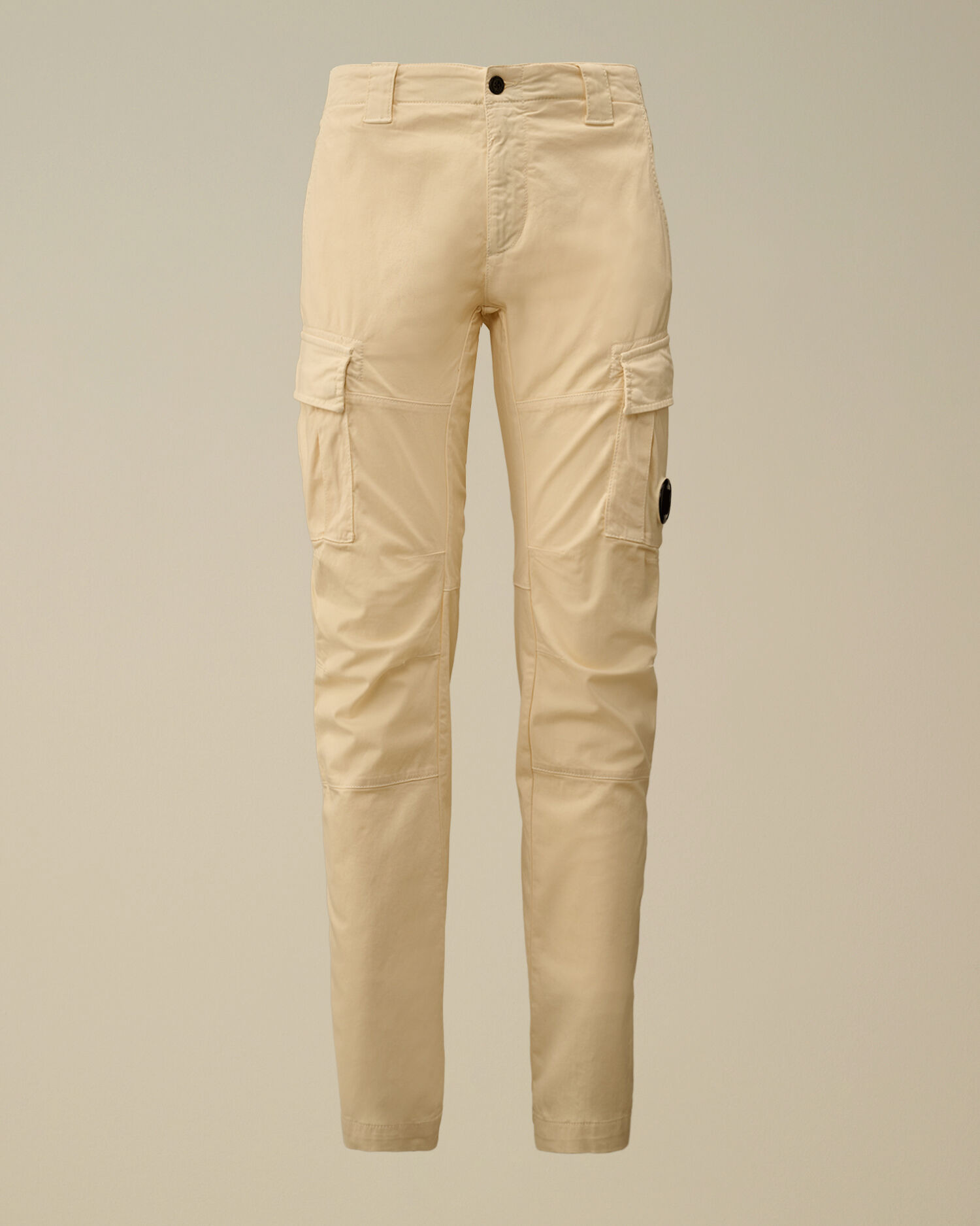 Cargo pants crafted in smooth, soft-textured stretch cotton. The pants feature C.P. Company’s iconic Lens, button and zip fastening, belt loops, side pockets, and cargo flap snap pockets. Complete with back welt snap pockets with an applied label. Garment dyed. Ergonomic fit. - Button and zip fastening - Belt loops - Side pockets - Cargo flap snap pockets with Lens detail - Back welt snap pockets with applied label - Garment dyed - Ergonomic fit CARE & COMPOSITION Care - Wash max 30°C - Mild process - Do not bleach - Do not tumble dry - Ironing maximum temperature 110°C - without steam - Do not dry clean - Line dry - Wash separately - Wash inside out - Iron inside out - Remove detachable accessories before washing Composition - External fabric: 98% Cotton, 2% Elastane / Spandex SIZE & FITTING - Fits true to size, take your normal size - Model is 186 cm-6' 1"/ 88-91 cm waist and is wearing a size 48 PRODUCT PASSPORT PRODUCT - Weaving: Turkiye - Dyeing: Tunisia - Confection: Tunisia PACKAGING - Minimum percentage of recycled materials 70%