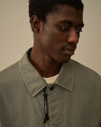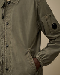 Overshirt crafted in Taylon P, a taslanised heavyweight nylon by air-jet texturing that gives a wool-like appearance. The overshirt features C.P. Company’s iconic Lens, a hidden full zip fastening with snap closure, and side flap snap pockets. Finished with an adjustable drawstring hem and mesh lining. Garment dyed with anti-drop treatment. Regular fit. - Classic collar - Hidden full zip fastening with snap closure - Side flap snap pockets - Lens detail - Adjustable drawstring hem - Mesh lining - Garment dyed - Regular fit CARE & COMPOSITION Care - Wash max 30°C - Mild process - Do not bleach - Do not tumble dry - Ironing maximum temperature 110°C - without steam - Do not dry clean - Line dry - Wash separately - Remove detachable accessories before washing Composition - External fabric: 100% Polyamide / Nylon - Lining: 100% Polyamide / Nylon - Secondary lining: 100% Polyamide / Nylon SIZE & FITTING - Fits true to size, take your normal size - Model is 186 cm-6' 1" / 98-103 cm chest and is wearing a size L PRODUCT PASSPORT PRODUCT - Weaving: China - Dyeing: China - Confection: China - Releases plastic microfibers into the environment during washing PACKAGING - Minimum percentage of recycled materials 70%