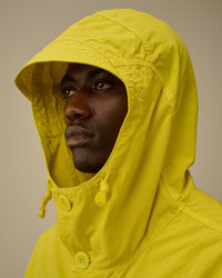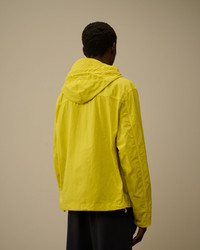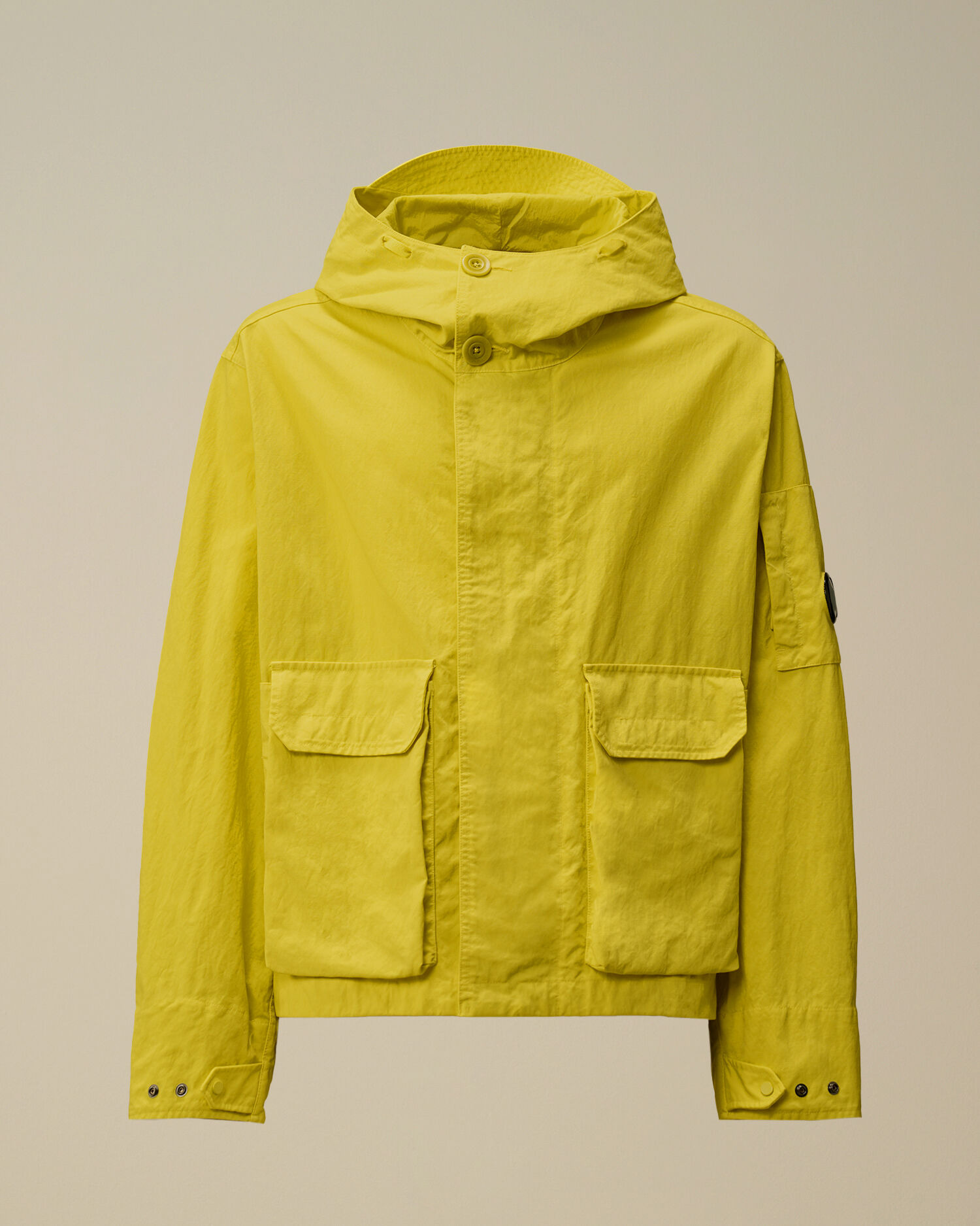 Hooded short jacket crafted in heavy-duty left-hand twill, woven from two nylon taslan yarns. The jacket features C.P. Company’s iconic Lens, a stand-up collar with a button placket, a hidden two-way full zip fastening, and front and side flap snap pockets. Unlined and garment dyed. Regular fit. - Stand-up collar with button placket - Adjustable visor hood - Hidden two-way full zip fastening with flap snap closure - Front and side flap snap pockets - Lens detail - Adjustable snap cuffs - Adjustable drawstring hem - Garment dyed - Unlined - Regular fit CARE & COMPOSITION Care - Wash max 30°C - Mild process - Do not bleach - Do not tumble dry - Ironing maximum temperature 110°C - without steam - Do not dry clean - Line dry in the shade - Wash separately - Wash inside out - Do not soak - Remove detachable accessories before washing Composition - External fabric: 100% Polyamide / Nylon - Lining: 100% Polyamide / Nylon SIZE & FITTING - Fits true to size, take your normal size - Model is 186 cm-6' 1" / 98-103 cm chest and is wearing a size L PRODUCT PASSPORT PRODUCT - Weaving: Korea - Dyeing: Italy - Confection: Romania - Releases plastic microfibers into the environment during washing PACKAGING - Minimum percentage of recycled materials 70%