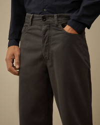 Five-pocket pants crafted in armoured cotton, featuring a durable structure and a vintage-inspired look. The pants feature button fastening, belt loops, and side pockets. Complete with a coin pocket and back button pockets, both with applied logo labels. Garment dyed. Loose fit. - Button fastening - Belt loops - Side pockets - Coin pocket with applied logo label - Back button pockets with applied logo label - Garment dyed - Loose fit CARE & COMPOSITION Care - Wash max 30°C - Mild process - Do not bleach - Do not tumble dry - Ironing maximum temperature 110°C - without steam - Do not dry clean - Line dry - Wash separately - Wash inside out - Iron inside out Composition - External fabric: 100% Cotton SIZE & FITTING - Fits true to size, take your normal size - Model is 186 cm-6' 1"/ 88-91 cm waist and is wearing a size 48 PRODUCT PASSPORT PRODUCT - Weaving: Turkiye - Dyeing: Tunisia - Confection: Tunisia PACKAGING - Minimum percentage of recycled materials 70%