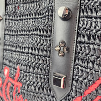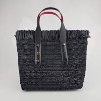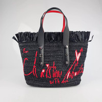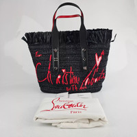 CHRISTIAN LOUBOUTIN Frangibus Medium Raffia Black Tote