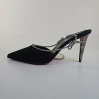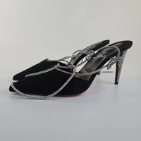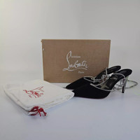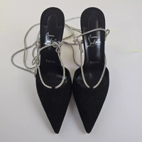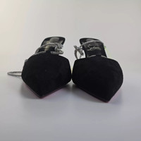 CL Astrid Lace Strass 85mm Black Suede Strappy Pumps