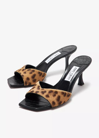 JIMMY CHOO Skye 70 Black Leopard Leather Mules