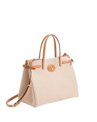 VALENTINO G. Antibes Medium Nat/Tobacco Canvas Tote