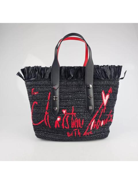 CHRISTIAN LOUBOUTIN Frangibus Medium Raffia Black Tote