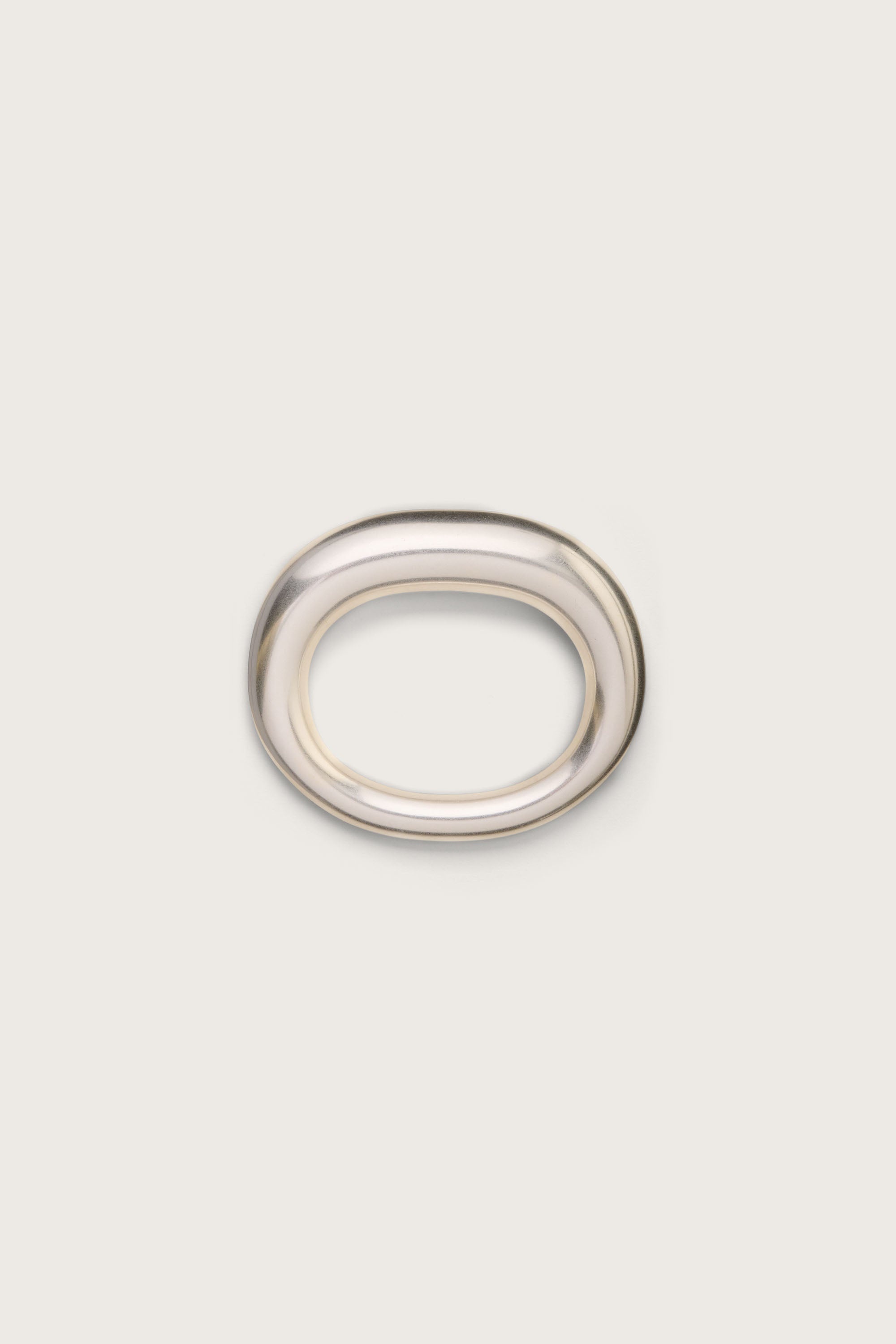 Adora is a sculptural reinterpretation of the classic Bracelet profile. She is a smooth, round piece with one side thicker than the other. Her antique silver-toned brushed brass is of the highest quality. She pairs with nearly everything and is guaranteed to add some sparkle to your style. SIZE & FIT NOTES WIDTH: .8" HEIGHT: 3.90" LENGTH: 3.30" Logo on inside of bracelet COMPOSITION AND CARE 100% Aluminum
