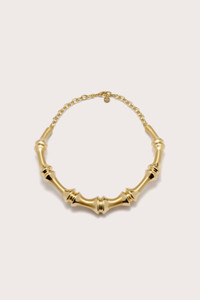 A striking brushed brass choker inspired by bamboo. — Brushed brass — Choker silhouette — Bamboo inspired — Clasp closure SIZE & FIT NOTES .67" W x 5.51" L COMPOSITION AND CARE 100% BRASS