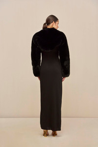 A faux fur shrug jacket with exaggerated sleeves. — Faux fur — Rolled collar — Exaggerated sleeves — Wear over the Abril Gown for an evening look SIZE & FIT NOTES Model is 5'10" and is wearing a size Small COMPOSITION AND CARE 100% FAUX FUR POLYESTER