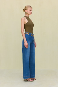 An easy high neck bodysuit in a comfortable knit fabrication. — High neck — Viscose knit fabric with stretch — Bodysuit — Subtle sheen COMPOSITION AND CARE FG VISCOSE (YV2418) 53% Rayon 46%NYLON 1%Spandex