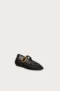 A unique ballet flat with hard knotted open netting and a gold abstract side buckle. — Black leather — Gold-toned abstract buckle — Adjustable strap — Hard knotted leather netting COMPOSITION AND CARE UPPER: 100% SHEEP LEATHER, OUTSOLE: 100% RUBBER