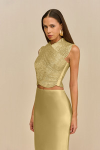 Preorder - Estimated Ship Date is Between October 31st and November 7th An artisanal top rendered in hand beaded arcs crossing over the torso. — Hand beaded — Mesh underlayer — Central back zipper — Cropped length SIZE & FIT NOTES Model is 5'10" and wearing a size 4 COMPOSITION AND CARE 100% GLASS BEADS SPOT CLEAN ONLY
