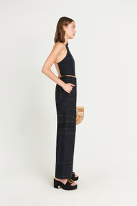 Our gorgeous Joey top is cut from a structured Black linen that boasts an elegant, ultra high-neck. Drama enters the scene with Joey’s skin-baring back, which is totally open and attached by stunning brass chain straps. The fitted bodice exudes a sense of timeless elegance, while the signature Cult Gaia chains drape across in a way that’s extraordinarily artful and eye-catching. Pair this with a simple high-waisted trouser, or our matching-hued Candice skirt. SIZE & FIT NOTES Model is 5'11" and wearing size Small Detachable chain back strap detail Dry clean only Slightly cropped Open back Double-layered lining in self Dry clean only with detachable brass chains COMPOSITION AND CARE 51% Linen, 47% Rayon, 2% Spandex