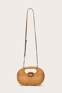 A charming crossbody bag fashioned out of natural rattan. — Woven rattan — Gold hardware — Top closure — Removable leather crossbody strap — Can be worn with the Tasha Detachable Strap SIZE & FIT NOTES 3.94" W x 6.89" H x 10.43" L COMPOSITION AND CARE 100% NATURAL RATTAN, 100% COW LEATHER, 100% COTTON, 100% BRASS PLATED METAL