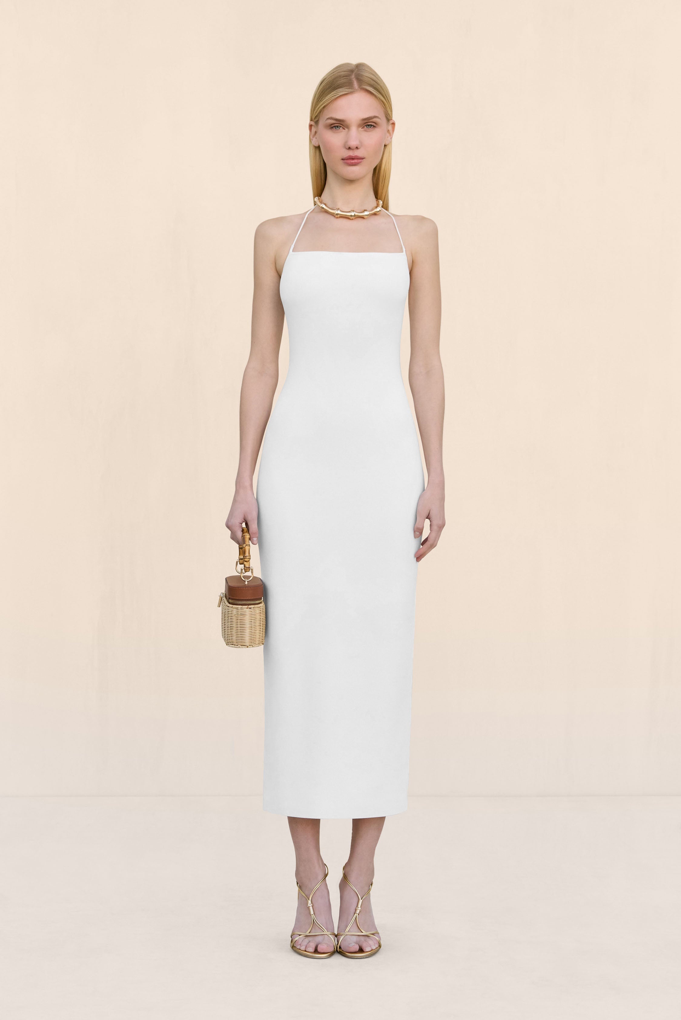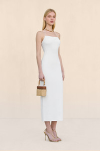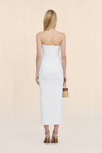 A sleek halter knit mini dress with an adjustable tie neckline. — Mini length — Adjustable straps — Pull on style — Square neckline SIZE & FIT NOTES Model is 5'10" and is wearing a size Small COMPOSITION AND CARE 65% VISCOSE, 35% NYLON