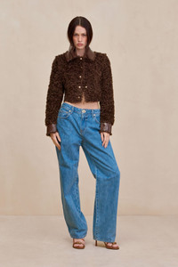 A reversible cropped jacket made from patent leather and faux shearling. — Cropped length — Reversible — Patent leather and faux shearling FIT NOTES Model is 5'10" and is wearing a size 4 COMPOSTION AND CARE 100% POLYESTER
