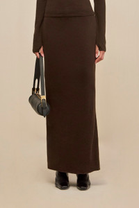 A classic knit midi skirt, featuring a drawstring waistband with golden teardrop details. — Midi length — Merino blend yarn — Elastic drawstring waistband — Wear as a set with the Andre Top or Rummi Top SIZE & FIT NOTES Model is 5'10" and wearing a size Small COMPOSITION AND CARE 30% WOOL, 25% NYLON, 45% ACRYLIC Dry Clean Only